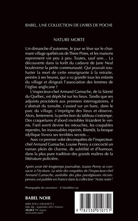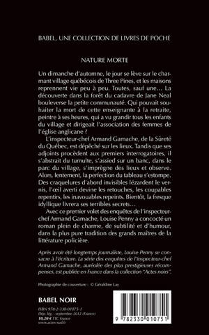 Au matin de Thanksgiving, on découvre dans le paisible petit village québecois de Three Pines le cadavre d'une vieille dame aimée de tous. L'inspecteur-chef Armand Gamache, de la Sûreté du Québec, est chargé de l'enquête. Qui pourrait souhaiter la mort d'une vieille dame aussi gentille ? Le mystère s'épaissit à mesure que l'on met au jour des oeuvres d'art que la victime a longtemps gardées secrètes. Rustiques, primitives et troublantes, ces peintures touchent différemment tous ceux qui les voient... Le premier volet d'une série qui a reçu les récompenses les plus prestigieuses.