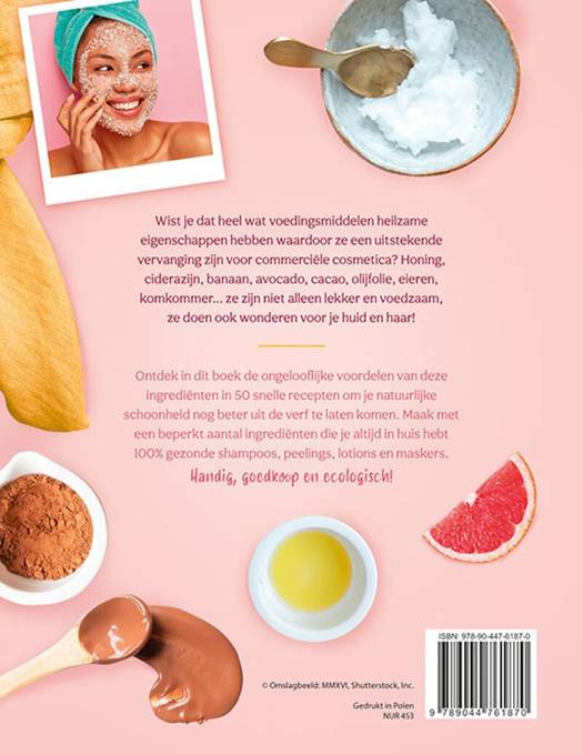 Ontdek in dit boek hoe je zelf natuurlijke cosmetica kunt maken met ingrediënten uit de keuken. Wist je dat heel wat voedingsmiddelen heilzame eigenschappen hebben waardoor ze een uitstekende vervanging zijn voor commerciële cosmetica? Honing, ciderazijn, banaan, avocado, cacao, olijfolie, eieren, komkommer… ze zijn niet alleen lekker en voedzaam, ze doen ook wonderen voor je huid en haar! In dit boek vind je maar liefst 50 snelle recepten om je schoonheid nog beter uit de verf te laten komen. Maak met een beperkt aantal ingrediënten die je altijd in huis hebt 100% natuurlijke shampoos, peelings, lotions en maskers. Handig, goedkoop en ecologisch!