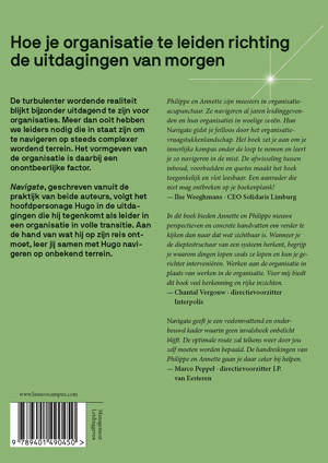 Dit boek, geschreven vanuit de praktijk van beide auteurs, volgt het hoofdpersonage Hugo in de uitdagingen die hij tegenkomt als leider in een organisatie in volle transitie. Aan de hand van wat hij op zijn reis ontmoet, leer jij samen met Hugo navigeren op onbekend terrein.