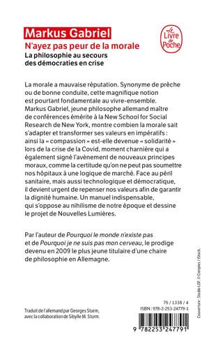 La morale a mauvaise réputation. Synonyme de prêche ou de bonne conduite, cette magnifique notion est pourtant fondamentale au vivre-ensemble. Markus Gabriel, jeune philosophe allemand maître de conférences émérite à la New School for Social Research de New York, montre combien la morale sait s’adapter et transformer ses valeurs en impératifs : ainsi, la « compassion » est-elle devenue « solidarité » lors de la crise du Covid, crise qui a également signé l’avènement de nouveaux principes moraux, comme la certitude qu’on ne peut pas soumettre nos hôpitaux à une logique de marché. Face au péril sanitaire, mais aussi technologique et démocratique, il devient urgent de repenser nos valeurs afin de garantir la dignité humaine. Un manuel indispensable, qui s’oppose au nihilisme de notre époque et dessine le projet de Nouvelles Lumières.