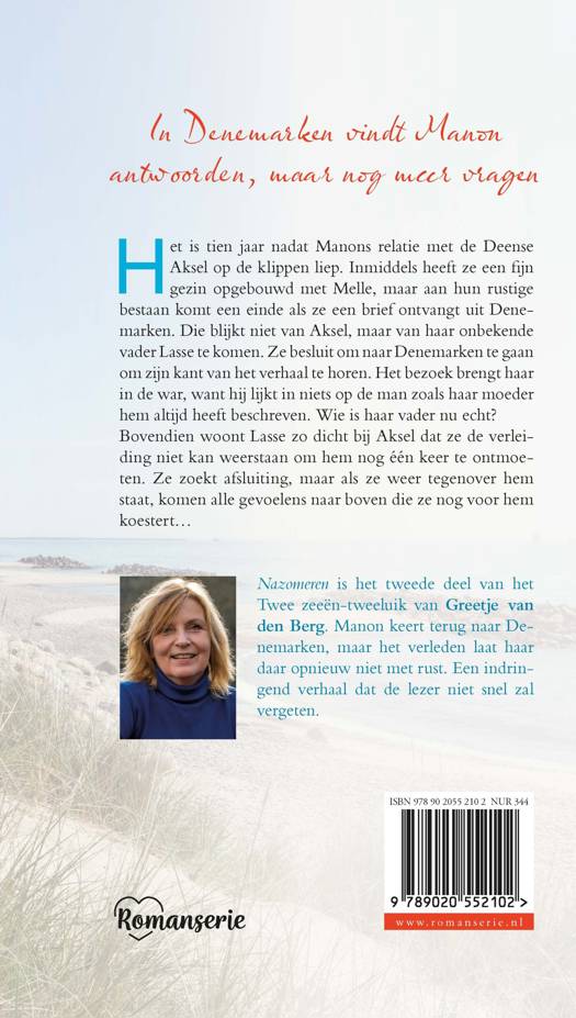 In ‘Nazomeren’, het afsluitende deel van het Twee zeeën-tweeluik, ontvangt Manon een brief van Deense afkomst. Hij blijkt van haar vader, Lasse Svendsen, te zijn. In eerste instantie heeft ze totaal geen behoefte om hem te ontmoeten, omdat ze door de verhalen van haar moeder een erg negatief beeld over hem heeft gevormd. Toch besluit ze om naar Denemarken te gaan om zijn kant van het verhaal te horen. Dit bezoek brengt haar aan het twijfelen. Wie is haar vader nu echt? Weer in Denemarken komen bovendien de vele herinneringen naar boven van de laatste keer dat ze er was. Lees ook het eerste deel: ‘Deense zomer’.