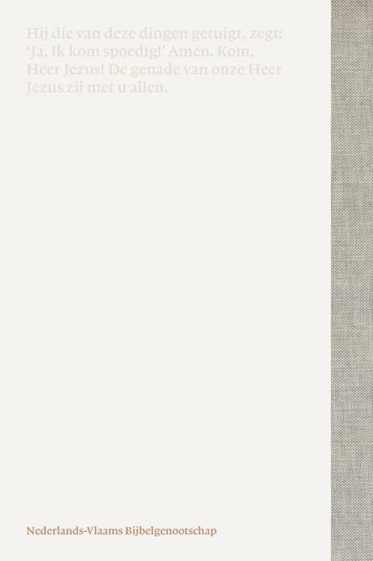Dit is de standaardeditie, een stijlvolle editie met linnen rug. Geschikt voor dagelijks gebruik. De linnen rug zorgt ervoor dat deze editie natuurlijk oogt en dat de bijbel lang mooi blijft, juist als je hem vaak gebruikt. Want de Bijbel is een boek dat je leven lang mee zou mogen gaan.