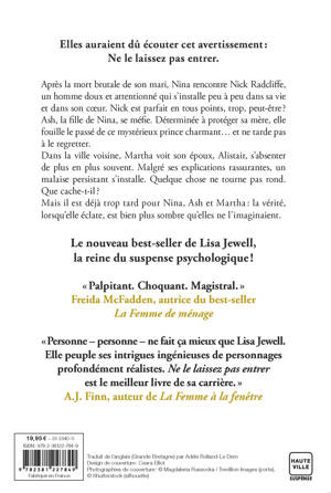 « Personne - personne - ne fait ça mieux que Lisa Jewell. Elle peuple ses intrigues ingénieuses de personnages profondément réalistes. Ne le laissez pas entrer est le meilleur livre de sa carrière. » A.J. Finn, auteur de La Femme à la fenêtre