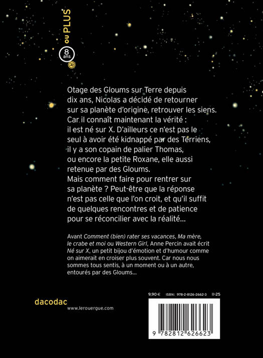 Quand il apprend qu'il est né sur X, Nicolas, 10 ans, n'est pas du tout surpris. Au contraire, tout s'explique : il a toujours su qu'il venait d'une autre planète. Il est retenu captif sur Terre, il est temps de s'échapper et de rejoindre les siens ! Commence alors une mission de la plus haute importance et dans le secret le plus total : Nicolas doit détecter les signes envoyés par son peuple, et enclencher le protocole de retour. Et peu importe s'il a mélangé « né sur X » avec « né sous X »... En se réfugiant dans la fiction pour mieux affronter la réalité, Nicolas nous offre un regard bouleversant et à hauteur d'enfant sur la filiation et la place qui nous revient. Et si la vraie famille, c'était celle qu'on se choisissait ?