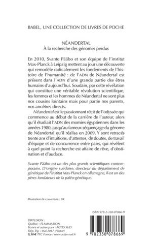Le beau récit d'une extraordinaire aventure scientifique, une magnifique odyssée qui va du début de la carrière de l'auteur, prix Nobel de médecine, dans les années 1980, jusqu'au fameux séquençage du génome de Néandertal qu'il réalisa en 2009 et qui constitue une véritable révolution scientifique : elle révèle que les femmes et les hommes de Néandertal ne sont pas nos cousins lointains mais aussi pour partie nos parents, nos ancêtres directs.