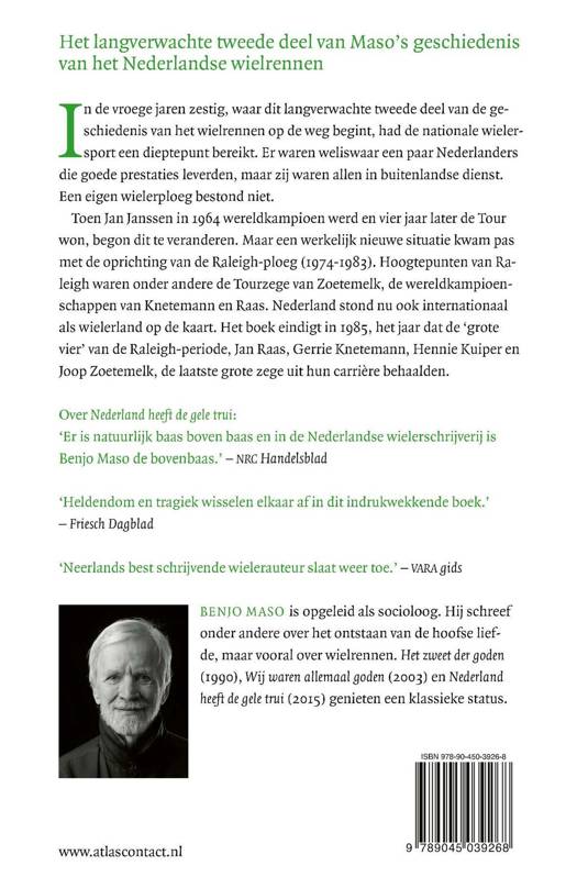 Met 'Nederland heeft weer de gele trui' schreef Benjo Maso het langverwachte tweede deel van de geschiedenis van het wielrennen. Beginnend bij de vroege jaren zestig, een dieptepunt in de nationale wielersport, volgt Maso de ontwikkelingen die ervoor zorgden dat Nederland in de jaren tachtig internationaal als wielerland op de kaart stond . Er waren in het begin van de jaren zestig weliswaar een paar Nederlanders die goede prestaties leverden, maar zij waren allen in buitenlandse dienst. Een eigen wielerploeg bestond niet. Toen Jan Janssen in 1964 wereldkampioen werd en vier jaar later de Tour won, begon dit te veranderen. Maar een werkelijk nieuwe situatie kwam er pas met de oprichting van de Raleigh-ploeg (1974-1983). Hoogtepunten van Raleigh waren onder andere de Tourzege van Zoetemelk, de wereldkampioenschappen van Knetemann en Raas. Het boek eindigt in 1985, het jaar dat de 'grote vier' van de Raleigh-periode, Jan Raas, Gerrie Knetemann, Hennie Kuiper en Joop Zoetemelk, de laatste grote zege uit hun carrière behaalden.