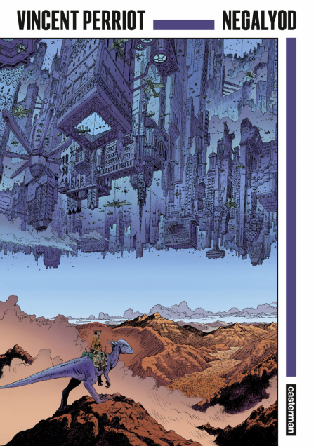 C’est un monde aux chaudes couleurs du désert, sillonné de gigantesques tuyaux et peuplé de dinosaures... Des villes flottantes recouvrent de leur ombre les faubourgs grouillants d’une humanité laissée à l’abandon... Et le « Réseau », omniprésent, domine les terres et les hommes. Jarri est berger. Il sait parler aux dinosaures et maîtrise l’art des cordes. Mais quand son troupeau est anéanti, le jeune homme décide de gagner la ville pour se venger... En réunissant créatures préhistoriques et villes de science-fiction, Vincent Perriot interroge dans Negalyod la toute-puissance de la technologie et le devenir de l’humanité. Il signe un récit d’aventure puissant, entre Blueberry et Le Monde d’Edena, de Giraud/Moebius.