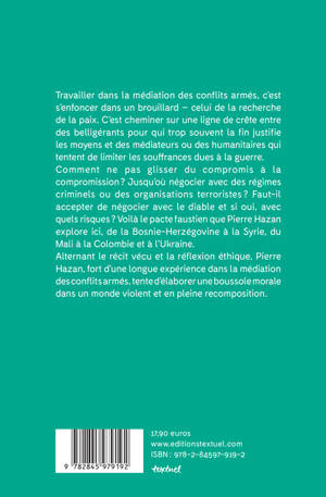 Travailler dans la médiation des conflits armés, c'est s'enfoncer dans le brouillard de la recherche de la paix. Comment ne pas glisser du compromis à la compromission ? Jusqu'où négocier avec des régimes criminels ou des organisations terroristes ? Alternant le récit vécu et la réflexion éthique, Pierre Hazan, fort d'une longue expérience dans la médiation des conflits armés, tente d'élaborer une boussole morale dans un monde violent et en pleine recomposition.