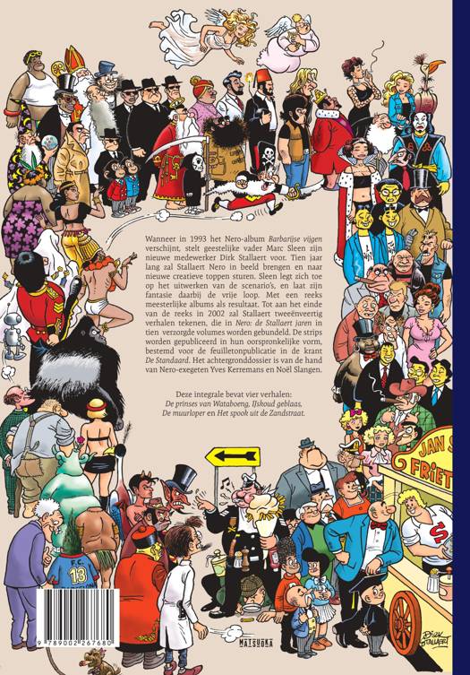 Toen in 1993 het Nero-album Barbarijse vijgen verscheen, stelde geestelijke vader Marc Sleen zijn nieuwe medewerker Dirk Stallaert voor aan zijn lezers. Tien jaar lang zal Stallaert Nero in beeld brengen en naar nieuwe creatieve toppen sturen. Sleen legt zich toe op het uitwerken van scenario’s, en laat zijn fantasie daarbij de vrije loop. Met een reeks meesterlijke albums als resultaat. Tot aan het einde van de reeks in 2002 zou Stallaert tweeënveertig verhalen tekenen, die in Nero: de Stallaert jaren in tien verzorgde volumes worden gebundeld. De strips worden gepubliceerd in hun oorspronkelijke vorm, bestemd voor de feuilletonpublicatie in de krant De Standaard. Het achtergronddossier is van de hand van Nero-exegeten Yves Kerremans en Noël Slangen.Deze integrale bevat 4 verhalen: De prinses van Wataboeng, IJskoud geblaas, De muurloper en Het spook uit de Zandstraat.