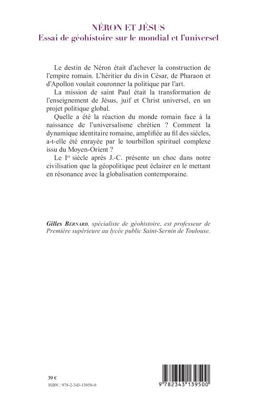 Le destin de Néron était d'achever la construction de l'empire romain et couronner la politique par l'art. La mission de saint Paul était la transformation de l'enseignement de Jésus en un projet politique global. Cet ouvrage retrace la dynamique identitaire romaine face à la naissance de l'universalisme chrétien, provenant du Moyen-Orient.