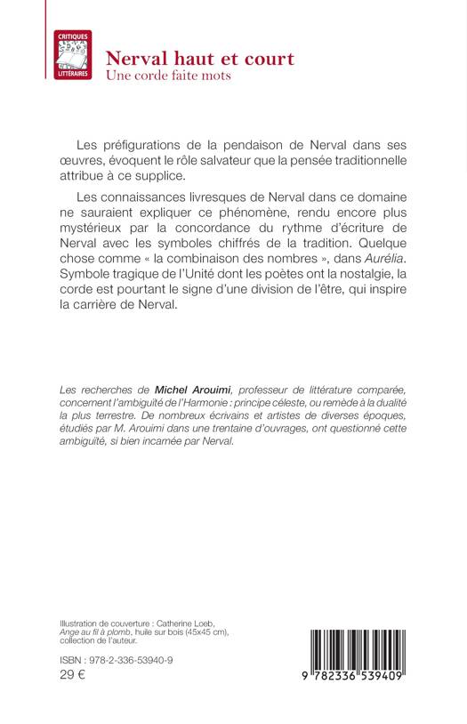 Les préfigurations de la pendaison de Nerval dans ses oeuvres, évoquent le rôle salvateur que la pensée traditionnelle attribue à ce supplice. Les connaissances livresques de Nerval dans ce domaine ne sauraient expliquer ce phénomène, rendu encore plus mystérieux par la concordance du rythme d'écriture de Nerval avec les symboles chiffrés de la tradition. Quelque chose comme la combinaison des nombres, dans Aurélia. Symbole tragique de l'Unité dont les poètes ont la nostalgie, la corde est pourtant le signe d'une division de l'être, qui inspire la carrière de Nerval.