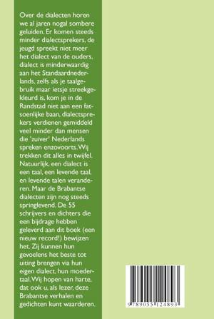 Over de dialecten horen we al jaren nogal sombere geluiden. Er komen steeds minder dialectsprekers, de jeugd spreekt niet meer het dialect van de ouders, dialect is minderwaardig aan het Standaardnederlands, zelfs als je taalgebruik maar ietsje streekgekleurd is, kom je in de Randstad niet aan een fatsoenlijke baan, dialectsprekers verdienen gemiddeld veel minder dan mensen die 'zuiver' Nederlands spreken enzovoorts. Wij trekken dit alles in twijfel. Natuurlijk, een dialect is een taal, een levende taal, en levende talen veranderen. Maar de Brabantse dialecten zijn nog steeds springlevend. De 55 schrijvers en dichters die een bijdrage hebben geleverd aan dit boek (een nieuw record!) bewijzen het. Zij kunnen hun gevoelens het beste tot uiting brengen via hun eigen dialect, hun moedertaal. Wij hopen van harte, dat ook u, als lezer, deze Brabantse verhalen en gedichten kunt waarderen.