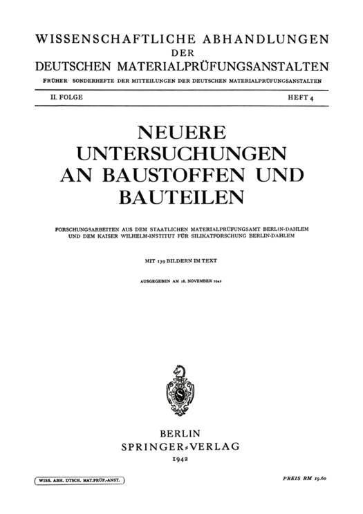 Neuere Untersuchungen an Baustoffen Und Bauteilen