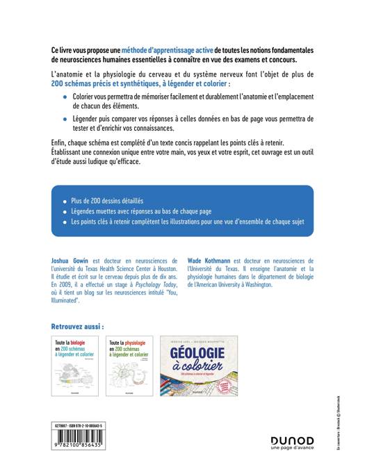 A travers plus de 200 schémas « muets » à légender et colorier, ce livre invite l’étudiant à devenir, de manière amusante, acteur de son apprentissage des termes clés, de l’anatomie et du fonctionnement du cerveau et du système nerveux humain essentiels à connaitre en vue des examens et concours. Les illustrations de qualité, à la fois précises et synthétiques, sont toutes accompagnées de légendes à compléter permettant ainsi au lecteur de tester ses connaissances. Les réponses figurent en bas de chaque page. Chaque dessin est complété d’un texte concis rappelant les points clés à retenir. Enfin, colorier les différents schémas aidera l’étudiant à mieux mémoriser et visualiser l’ensemble des connaissances.