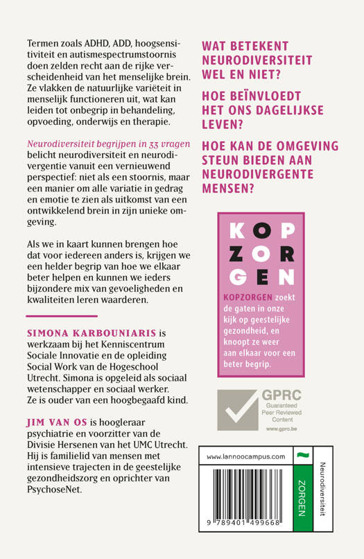Neurodiversiteit begrijpen in 33 vragen belicht neurodiversiteit en neurodivergentie vanuit een vernieuwend perspectief: niet als een stoornis, maar een manier om alle variatie in gedrag en emotie te zien als uitkomst van een ontwikkelend brein in zijn unieke omgeving.
