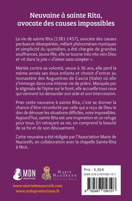 Cette neuvaine sollicite l'intercession de la sainte des causes désespérées, visant à apporter espoir et soutien dans les situations les plus difficiles. Elle s'inscrit dans une riche tradition, et depuis la canonisation en 1900 de cette religieuse italienne du XV ème siècle, de nombreux témoignages attestent de miracles et de grâces reçus. Accessible à tous, elle constitue un moyen puissant de renouvellement spirituel, rappelant l'importance de la foi, de l'espérance et de l'amour dans les moments de crise.