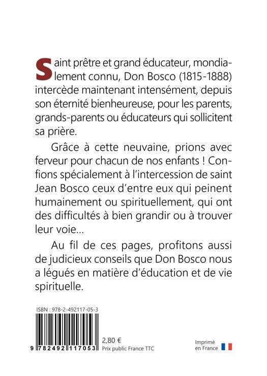 Cette neuvaine est spécialement faite pour les parents qui veulent demander l’intercession de saint Jean Bosco : ● afin d’être aidés par le Seigneur dans leur mission. ● pour prier Dieu à l’intention d’un enfant confronté à des difficultés précises. ● pour confier au Seigneur un enfant qui peine dans son chemin de croissance humaine ou spirituelle, ou qui fait des choix mortifères et se ferme à l’amour de Dieu. ● pour confier au Seigneur l’avenir d’un enfant, son orientation scolaire et professionnelle, le choix de ses activités extra-scolaires.