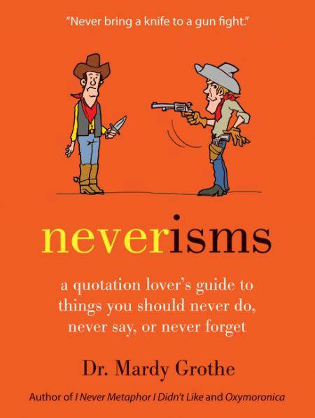 From Mardy Grothe, the author of Ifferisms,Oxymoronica,and I Never Met a Metaphor IDidn’t Like, comes a new collection of witty and wise quotations about what never to do in life. Remember, “never let the fear of striking out get in your way” (BabeRuth), "never hit anyone if you can help it, but never hit soft"(Theodore Roosevelt); "never be afraid tosit awhile and think" (Lorraine Hansberry); and, of course, neverleave home without the perfect quote for any occasion from Dr. Mardy’s Neverisms.