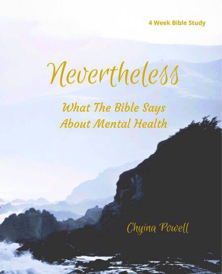 Nevertheless is a Bible-based study meant to help offer encouragement to anyone and everyone who has ever felt alone, anxious, depressed, unloved or unheard. It looks at four major mental health struggles: depression, anxiety, feelings of inadequacy and feelings of mental/emotional exhaustion and what the Word says about combating these issues.