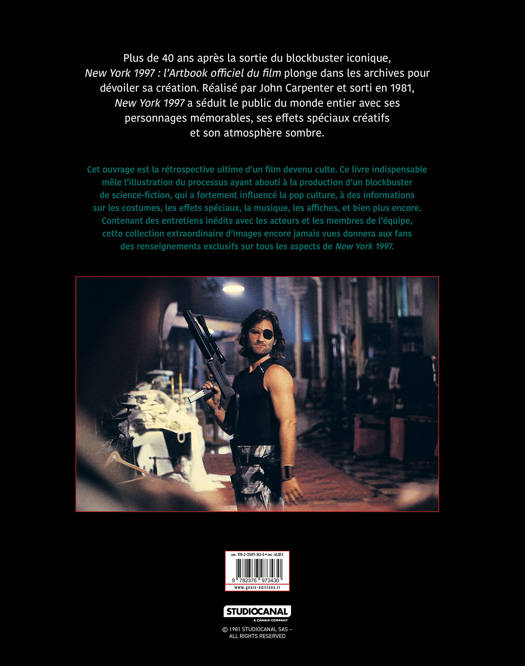 Cet ouvrage est la rétrospective ultime d’un film devenu culte. Ce livre indispensable mêle l’illustration du processus ayant abouti à la production d’un blockbuster de science-fiction, qui a fortement influencé la pop culture, à des informations sur les costumes, les effets spéciaux, la musique, les affiches, et bien plus encore. Contenant des entretiens inédits avec les acteurs et les membres de l’équipe, cette collection extraordinaire d’images encore jamais vues donnera aux fans des renseignements exclusifs sur tous les aspects de New York 1997.