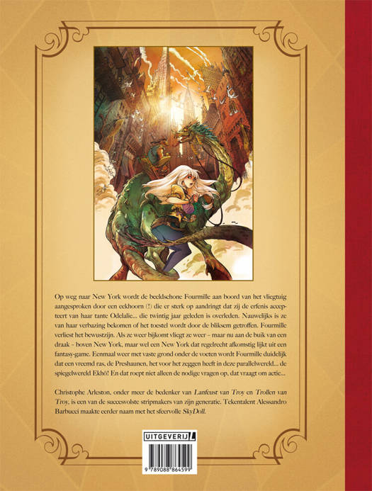Op weg naar New York wordt de beeldschone Fourmille aan boord van het vliegtuig aangesproken door een eekhoorn (!) die er sterk op aandringt dat zij de erfenis accep- teert van haar tante Odelalie... die twintig jaar geleden is overleden. Nauwelijks is ze van haar verbazing bekomen of het toestel wordt door de bliksem getroffen. Fourmille verliest het bewustzijn. Als ze weer bijkomt vliegt ze weer – maar nu aan de buik van een draak – boven New York, maar wel een New York dat regelrecht afkomstig lijkt uit een fantasy-game. Eenmaal weer met vaste grond onder de voeten wordt Fourmille duidelijk dat een vreemd ras, de Preshaunen, het voor het zeggen heeft in deze parallelwereld... de spiegelwereld Ekhö! En dat roept niet alleen de nodige vragen op, dat vraagt om actie...