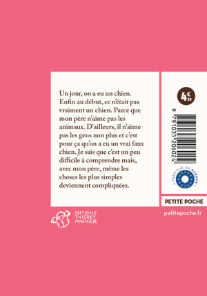 Un jour, on a eu un chien. Enfin au début, ce n'était pas vraiment un chien. Parce que mon père n'aime pas les animaux. D'ailleurs, il n'aime pas les gens non plus et c'est pour ça qu'on a eu un vrai faux chien. Je sais que c'est un peu difficile à comprendre mais, avec mon père, même les choses les plus simples deviennent compliquées.