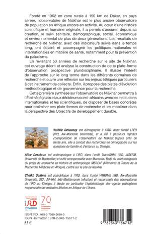 Fondé en 1962 en zone rurale à 150 km de Dakar, l'observatoire de Niakhar est le plus ancien observatoire de population en Afrique encore en activité. Au coeur d'une histoire scientifique et humaine originale, il a permis d'assurer le suivi sanitaire, démographique, social, économique et environnemental de plus de deux générations. En revisitant 50 années de recherche sur le site de Niakhar, cet ouvrage décrit et analyse la construction de cette plate-forme d'observation prospective pluridisciplinaire et propose des pistes d'évolution méthodologique et de gouvernance pour la recherche.