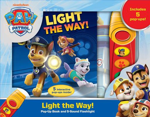 Grab your flashlight and join the PAW Patrol on an adventure! When the lights go out in Adventure Bay, it's up to the pups to turn on the power. Use your flashlight to help the PAW Patrol fix the lights before Chase's birthday party! Shine the light on the 5 pop-ups to see what shadows appear! 5 interactive buttons right on the flashlight bring the story to life with fun sounds.