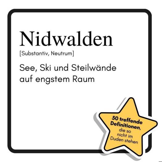 Hier treffen sich Kühe, Käse und Klettersteige auf engstem Raum: "Nidwalden: See, Ski und Steilwände auf engstem Raum" zeigt, wie ein kleiner Kanton zwischen Vierwaldstättersee und schroffen Felswänden mehr Abenteuer, Eigenheiten und Lokalkolorit bietet als so manches Alpenland. 50 witzige Definitionen und liebevoll gezeichnete Illustrationen bringen die Eigenheiten von Stanserhorn bis Alpkäse-Chäller auf den Punkt - mit einer Prise Selbstironie und viel Herz für die Nidwaldner Eigenart.Für wen dieses Buch optimal geeignet ist:- Für Schweiz-Fans, die mehr als nur Zürich und Matterhorn kennen wollen- Für alle, die Nidwalden mit einem Augenzwinkern entdecken möchten- Für Freunde von regionalem Humor und kreativen IllustrationenEin bunter Streifzug durch Nidwaldens Highlights, von historischen Persönlichkeiten bis zu kulinarischen Spezialitäten, von steilen Serpentinen bis zu urigen Bräuchen.Was der Kunde erwarten kann:- 50 humorvolle Definitionen zu Nidwalden- Passende Illustrationen zu jedem Thema- Regionale Eigenheiten mit Witz erklärt- Perfekt als Geschenk oder Souvenir