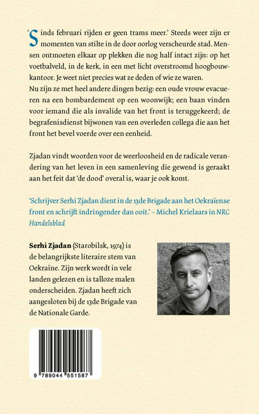 ‘Schrijver Serhi Zjadan dient in de 13de Brigade aan het Oekraïense front en schrijft indringender dan ooit.’ – Michel Krielaars in NRC Handelsblad