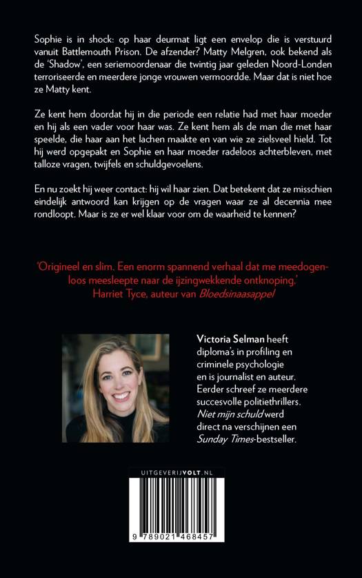 Sophie is in shock: op haar deurmat ligt een envelop die is verstuurd vanuit Battlemouth Prison. De afzender? Matty Melgren, ook bekend als de ‘Shadow’, een seriemoordenaar die twintig jaar geleden Noord-Londen terroriseerde en meerdere jonge vrouwen vermoordde. Maar dat is niet hoe ze Matty kent.