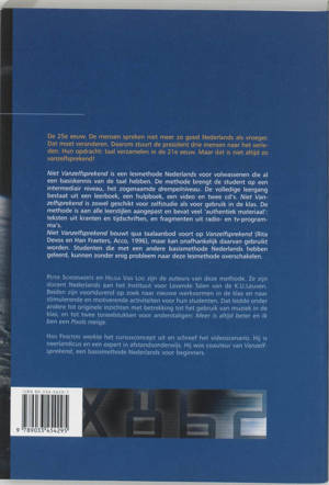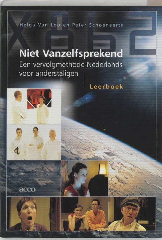 De 25ste eeuw. De mensen spreken niet meer zo goed Nederlands als vroeger. Dat moet veranderen. Daarom stuurt de president drie mensen naar het verleden. Hun opdracht: taal verzamelen in de 21ste eeuw. Dat is het begin van een spannend en niet zo vanzelfsprekend verhaal... Niet Vanzelfsprekend is een lesmethode Nederlands voor volwassenen die al een basiskennis van de taal hebben. De methode brengt de student op een intermediair niveau, het zogenaamde drempelniveau . De volledige leergang bestaat uit een leerboek, een hulpboek, een video en een cd. Niet Vanzelfsprekend is zowel geschikt voor zelfstudie als voor gebruik in de klas. De methode is aangepast aan alle leerstijlen en bevat veel ‘authentiek materiaal’: teksten uit kranten en tijdschriften, en fragmenten uit radio- en tv-programma’s. Niet Vanzelfsprekend bouwt qua taalaanbod voort op Vanzelfsprekend (Rita Devos en Han Fraeters, Acco, 1996), maar kan onafhankelijk daarvan gebruikt worden. Studenten die met een andere basismethode Nederlands hebben geleerd, kunnen zonder enig probleem naar deze lesmethode overschakelen. Doorheen de twaalf delen van het leerboek speelt zich het grote talenavontuur af. Xavier, Anton en Vera leven in de 25ste eeuw. Zij krijgen de opdracht terug te keren in de tijd om taalmateriaal uit de 21ste eeuw te verzamelen. Elk deel behandelt een thema dat voor anderstalige studenten op dit niveau interessant is: geld, wonen, werk, studie, cultuur, vrije tijd, reizen enz. Stap voor stap worden nieuwe woorden, taalfuncties en grammatica op een eigentijdse wijze aangeleerd.