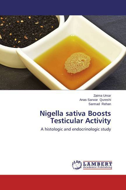 The seeds of Nigella sativa Linn. (Ranunculaceae) are commonly known as black seed or black cumin and locally called as kalonji. The seeds of Nigella sativa are used in herbal medicine all over the world for the treatment and prevention of a number of diseases and conditions. The present study revealed that oral administration of black seed (Nigella sativa) oil at a dose rate of 5ml/kg body weight for 60 days on daily basis had positive effect on spermatogenic activity in terms of histomorphometrical characteristics of testes i.e., diameter and area of seminiferouse tubules, percentage area of interstitial cells in relation to seminiferouse tubules, spermatogenic cell layer of seminiferouse tubules, thickness of germinal layer and volume of seminiferouse tubules of testes of all rabbits. Number of spermatogonia and serum testosterone concentration also increased in treated group as compared with the control group. Thymoquinone might be the major component of black seed (Nigella sativa) oil important for enhanced testicular activity.
