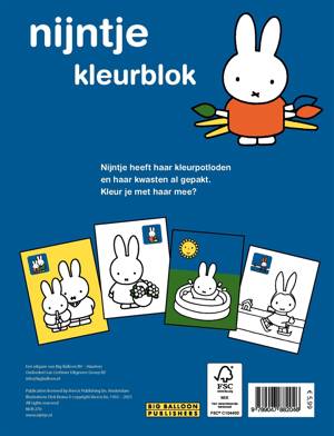 Nijntje heeft haar kleurpotloden en haar kwasten al gepakt, kleur je met haar mee in 'nijntje kleurblok'?