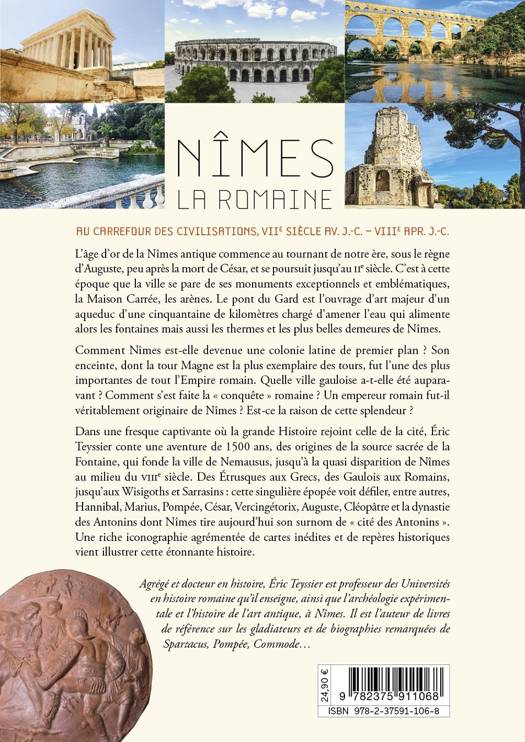 L’âge d’or de la Nîmes antique commence au tournant de notre ère, sous le règne d’Auguste, peu après la mort de César, et se poursuit jusqu’au IIe siècle. C’est à cette époque que la ville se pare de ses monuments exceptionnels et emblématiques, la Maison Carrée, les arènes. Le pont du Gard est l’ouvrage d’art majeur d’un aqueduc d’une cinquantaine de kilomètres chargé d’amener l’eau qui alimente alors les fontaines mais aussi les thermes et les plus belles demeures de Nîmes. Comment Nîmes est-elle devenue une colonie latine de premier plan ? Son enceinte, dont la tour Magne est la plus exemplaire des tours, fut l’une des plus importantes de tout l’Empire romain. Quelle ville gauloise a-t-elle été auparavant ? Comment s’est faite la « conquête » romaine ? Un empereur romain fut-il véritablement originaire de Nîmes ? Est-ce la raison de cette splendeur ? Dans une fresque captivante où la grande Histoire rejoint celle de la cité, Éric Teyssier conte une aventure de 1500 ans, des origines de la source sacrée de la Fontaine, qui fonde la ville de Nemausus, jusqu’à la quasi disparition de Nîmes au milieu du VIIIe siècle. Des Étrusques aux Grecs, des Gaulois aux Romains, jusqu’aux Wisigoths et Sarrasins : cette singulière épopée voit défiler, entre autres, Hannibal, Marius, Pompée, César, Vercingétorix, Auguste, Cléopâtre et la dynastie des Antonins dont Nîmes tire aujourd’hui son surnom de « cité des Antonins ». Une riche iconographie agrémentée de cartes inédites et de repères historiques vient illustrer cette étonnante histoire.