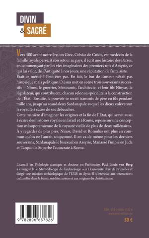 Confrontés à l'obscurité des origines de l'État, des auteurs grecs et judéens ont senti le besoin de les inventer. A cet effet, ils ont « historicisé » l'idéologie royale en vigueur en Assyrie et dans l'Empire perse. Les historiens romains ont suivi. Chacun a mis en uvre, selon sa propre culture, le même modèle de la royauté dans un récit de la construction progressive de l'État. Il s'ensuit des rapprochements inattendus entre rois et dieux grecs, judéens et romains.