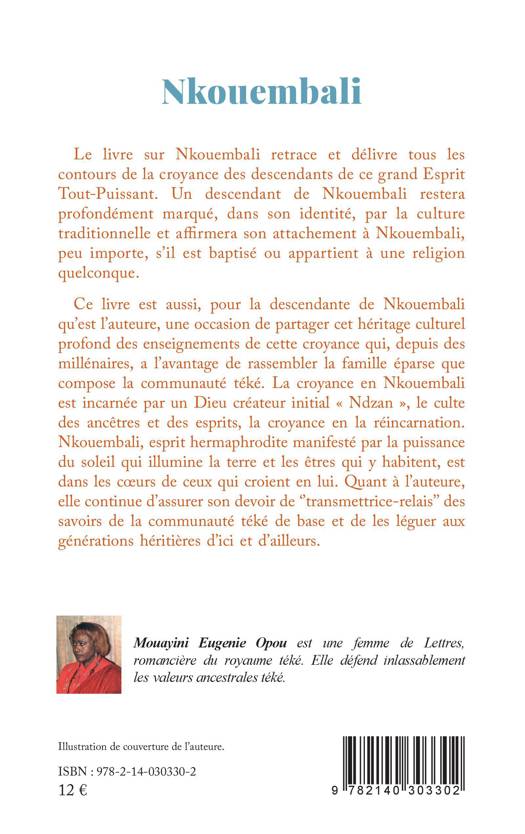 Le livre sur Nkouembali retrace et délivre tous les contours de la croyance des descendants de ce grand Esprit Tout-Puissant. Un descendant de Nkouembali restera profondément marqué, dans son identité, par la culture traditionnelle et affirmera son attachement à Nkouembali, peu importe, s'il est baptisé ou appartient à une religion quelconque. Ce livre est aussi, pour la descendante de Nkouembali qu'est l'auteure, une occasion de partager cet héritage culturel profond des enseignements de cette croyance qui, depuis des millénaires, a l'avantage de rassembler la famille éparse que compose la communauté téké.