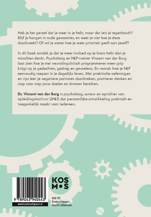 In ‘NLP voor beginners’ laat Vincent van der Burg zien hoe jij je eigen mindset positief kan beïnvloeden met behulp van neurolinguïstisch programmeren (NLP). Heb je het gevoel dat je jezelf steeds saboteert? Dat iets je tegenhoudt? Of ben je op zoek naar meer rust en zelfvertrouwen?