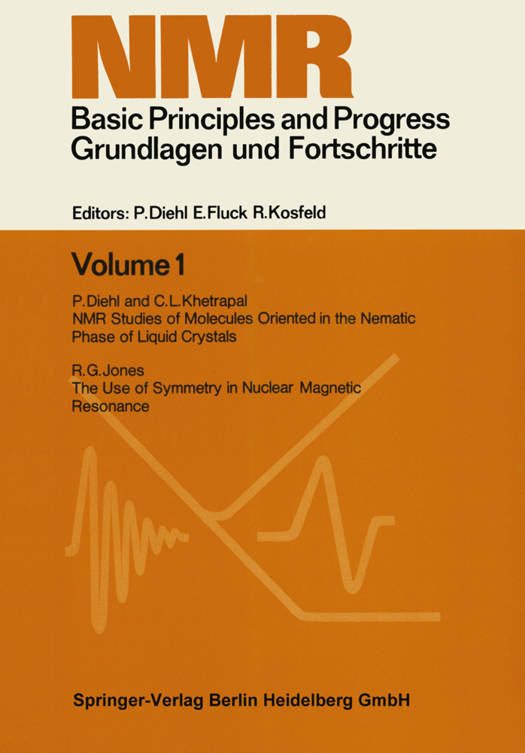 Nuclear magnetic resonance spectroscopy, which has evolved only within the last 20 years, has become one of the very important tools in chemistry and physics. The literature on its theory and application has grown immensely and a comprehensive and adequate treatment of all branches by one author, or even by several, becomes increasingly difficult. This series is planned to present articles written by experts working in various fields of nuclear magnetic resonance spectroscopy, and will contain review articles as well as progress reports and original work, its main aim, however, is to fill a gap, existing in literature, by publishing articles written by specialists, which take the reader from the introductory stage to the latest development in the field. The editors are grateful to the authors for the time and effort spent in writing the articles, and for their invaluable cooperation. The Editors Contents P. Diehl and C. L. Khetrapal NMR Studies of Molecules Oriented in the Nematic Phase of Liquid Crystais......................................................... 1 R. G. Jones The Use of Symmetry in Nuclear Magnetic Resonance................. 97 NMR Studies of Molecules Oriented in the Nematic Phase of Liquid Crystals P. DIEHL and C. L. KHETRAPAL * Department of Physics, University of Basel, Switzerland Contents 1. Introduction . . . . . . . . . . . . . . . . . . . .. . . . . . . . . . . . . . . . . . . . . . . . . . . . . . . 3 2. Liquid Crystals . . . . . . . . . . . . . . . . . . . . . . . . . . . . . . . . . 4 . . . . . . . . . . . . . . 2.1. Classification of Liquid Crystal Phases . . . . . . . . . . . . . . . . . . . . . . . 4 2.2. Theories of the Liquid Crystalline State . . . . . . . . . . . . . . . . . . . . . . 5 2.3. Nematic Phases . . . . . . . . . . . . . . .. . . . . . . . . . . . . . . . . . . . . . . . . . . 6 3. Experimental . . . . . . . . . . . . . . . . . . . . . . . . . . . . . . . . . . . . . . . . . . . . . . . . . 7 1 4. Basic Theory (for I = I ). . . . . . . . . . . . . - . . . . . . . . . . . . . . . . . . . . . . . 7 . .