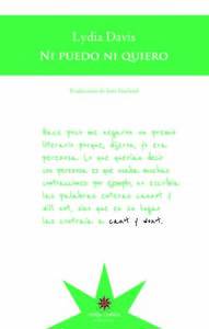 Ni puedo ni quiero es el libro de relatos más revolucionario escrito por un escritor norteamericano en los últimos 25 años. The Boston Globe Lydia Davis, una de las cuentistas contemporáneas más importantes del mundo. La pasión por la palabra exacta junto al ingenio, el humor y una extraña belleza en una colección de r elatos que retrata la realidad como un collage, donde el orden lo da el lenguaje y el estilo finamente trabajado. Un libro extraordinario de una de las mentes más brillantes e inquietantes de la literatura norteamericana actual.