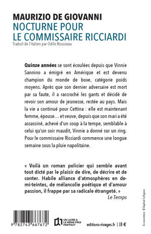 Quinze années se sont écoulées depuis que Vinnie Sannino a émigré en Amérique et est devenu champion du monde de boxe, catégorie poids moyens. Après que son dernier adversaire est mort par sa faute, il a raccroché les gants et décidé de revoir son amour de jeunesse, restée au pays. Mais la vie a continué pour Cettina : elle est maintenant femme, épouse... et veuve, depuis que son mari a été assassiné, achevé d'un coup à la tempe, semblable à celui qu'un soir maudit Vinnie a donné sur un ring. Pour le commissaire Ricciardi commence une longue semaine sous la pluie napolitaine.