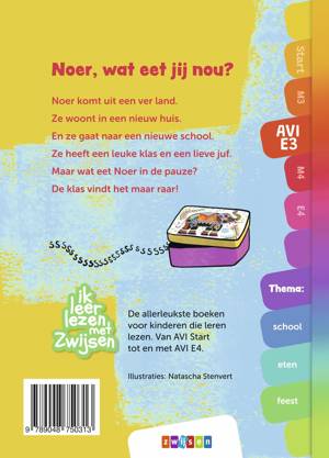 Wat is het spannend voor Noer om naar de nieuwe school te gaan. Gelukkig zijn er leuke kinderen in de klas en een lieve juf. De kinderen zijn wel verbaasd over het eten dat Noer heeft meegenomen. Maar het smaakt heerlijk en Noer kan uitdelen! Eigentijds beginnend lezersboek op AVI E3 over verschillen in eetgewoontes. Leesplezier gegarandeerd.