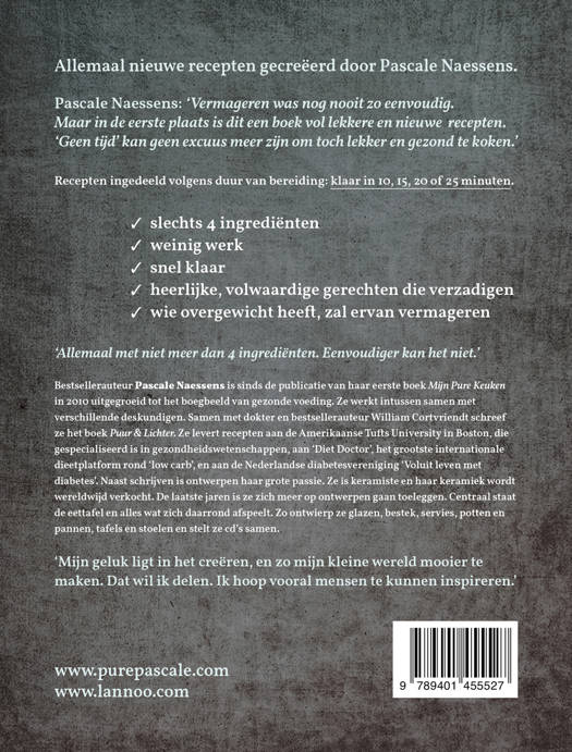 Pascale Naessens is de leading lady als het gaat over eenvoudige en gezonde voeding. In haar nieuwste boek focust ze meer dan ooit op heerlijke recepten met een minimum aan ingrediënten en werk. Zo bewijst ze eens te meer dat gezonde voeding haalbaar is voor iedereen.