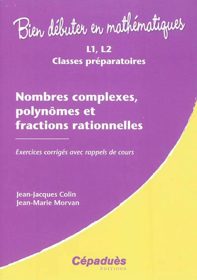 Cet ouvrage s'adresse essentiellement aux étudiants de L1, L2 des Universités, et aux étudiants des Classes Préparatoires aux Grandes Écoles. Les questions abordées sont en général celles qui sont enseignées en première année : nombres complexes, polynômes, fractions rationnelles.