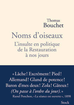 Côté pile, les insultes sont réputées injustes et blessantes. Côté face, on les dit futiles et indignes d'attention. Elles semblent incarner les petitesses du débat politique. Elles méritent pourtant mieux que l'irritation, le sourire ou le mépris. Que l'on choisisse simplement d'en étudier une de près et l'enquête, palpitante, commence. Car la parole mordante ne se laisse pas cerner si facilement. Elle ne se révèle dans toute sa profondeur que si l'on prend le temps de décortiquer les mots incriminés, d'identifier les auteurs, victimes et témoins, de mettre les principaux enjeux en lumière, de décrypter le déploiement des conséquences immédiates ou lointaines. Au-delà de leur impact immédiat, « menteur », « ruraux », « vous êtes du Syndicat », « chiens couchants » ou « représentants du peuple entre guillemets » exigent - bien davantage que le très pauvre « Cass'toi alors, pauv'con » de Nicolas Sarkozy - un patient décodage. Noms d'oiseaux est l'étude suivie d'une douzaine de ces situations d'insultes extraites de l'histoire française, au fil de deux siècles de parlementarisme. On y croise, au gré des chapitres, des groupes d'ultraroyalistes, de boulangistes ou de communistes en colère, mais aussi Honoré Daumier à sa table de travail, Michel Goudchaux en pleine déconfiture, Victor Hugo à l'assaut de « Napoléon le Petit », Georges Clemenceau l'épée au poing, Jean Jaurès frappé à la nuque, Léon Blum ou Simone Veil estomaqués par l'abjection de ce qu'ils viennent d'entendre, Dominique de Villepin les deux index pointés contre François Hollande. Par la petite porte, les insultes permettent de s'installer au coeur des débats d'hémicycle, de la Restauration à nos jours, en passant par l'Affaire Dreyfus, le Front populaire ou encore la Guerre froide.