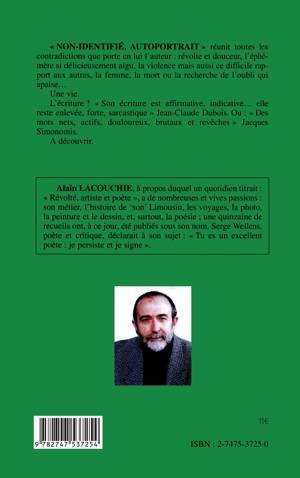NON-IDENTIFIÉ, AUTOPORTRAIT » réunit toutes les  contradictions que porte en lui l'auteur : révolte et douceur, l' éphé­mère si délicieusement aigu, la violence mais aussi ce difficile rap­port aux autres, la femme, la mort ou la recherche de l'oubli qui apaise ...