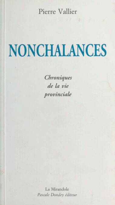 Chacun a sa manière d’être heureux, ou malheureux, dans sa province foisonnante de petits secrets, de joies discrètes, de chagrins passagers, de talents insoupçonnés, de courages modestes, de beautés que l’on envie. Depuis toujours Pierre Vallier est un promeneur nonchalant dans cette province, dont le cœur se situe dans la Drôme, l’Ardèche, la vallée du Rhône et cent autres petites vallées. Ainsi dans ses chroniques douces et allègres on croise une foule de gens de ce pays, connus et inconnus, et quelques célébrités comme Rita Hayworth ou Picasso, Sacha Guitry ou Braque, Isabelle Adjani ou Pagnol. Ce journaliste aime aussi les paysages souverains, les choses fragiles, les maisons mystérieuses, les confidences fugitives. Mais, parfois, à l’origine de ces textes il n’y a qu’un sourire, une odeur, un silence, un geste, une nostalgie, presque rien. D’ailleurs l’auteur confond souvent avec délectation l’éphémère et l’éternel. Enfin, un peu de l’âme de ce pays a pris l’habitude, insensiblement, de venir se blottir dans les « Nonchalances ». C’est pour cela, peut-être, que ces chroniques de la vie provinciale nous ressemblent tant.