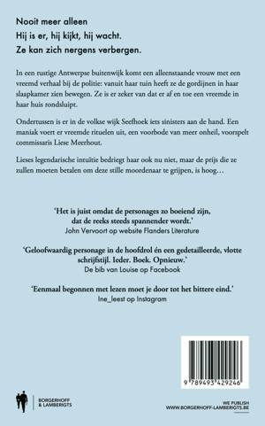 In een rustige Antwerpse buitenwijk komt een alleenstaande vrouw met een vreemd verhaal bij de politie: vanuit haar tuin heeft ze de gordijnen in haar slaapkamer zien bewegen. Ze is er zeker van dat er af en toe een vreemde in haar huis rondsluipt. Ondertussen is er in de volkse wijk Seefhoek iets sinisters aan de hand. Een maniak voert er vreemde rituelen uit, een voorbode van meer onheil, voorspelt commissaris Liese Meerhout. Lieses legendarische intuïtie bedriegt haar ook nu niet, maar de prijs die ze zullen moeten betalen om deze stille moordenaar te grijpen, is hoog…