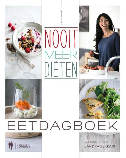 Het eetdagboek is een handig instrument om je goede voornemens in de praktijk om te zetten. Je kan erin noteren wat je elke dag van plan bent om te maken, wat je effectief eet en welke stappen je die dag al tot een goed einde hebt gebracht. Door telkens het boodschappenlijstje in te vullen, zal je sneller én beter inkopen doen. Bovendien strooit Sandra met nuttige tips, weetjes en aanmoedigingen. Het eetdagboek zorgt voor planning en houvast, waardoor 'nooit meer diëten' eenvoudiger wordt dan ooit!