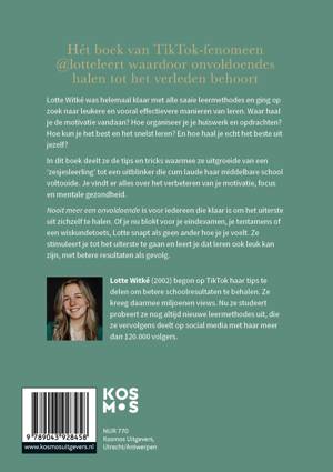 Lotte Witké was helemaal klaar met alle saaie leermethodes en ging op zoek naar leukere en vooral effectievere manieren van leren. Waar haal je de motivatie vandaan? Hoe organiseer je je huiswerk en opdrachten? Hoe kun je het beste en het snelst leren? En hoe haal je echt het beste uit jezelf?